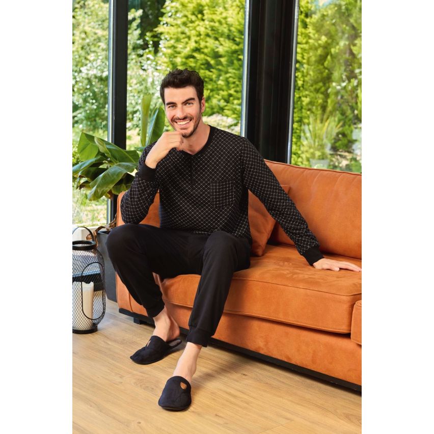 Pijama bărbați, 240864, 100% bumbac, negru, Aydogan